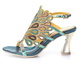 From heel to toe, the Abby Peacock is loaded with shiny, multicolor rhinestones. Three rows of stones across the toe meet to create the pattern of a feathery peacock tail (hence the shoe name!) up the vamp of the shoe. Dual rows of rhinestones also adorn both sides of the heel, which also happens to have a glamorous, mirror-like finish.
